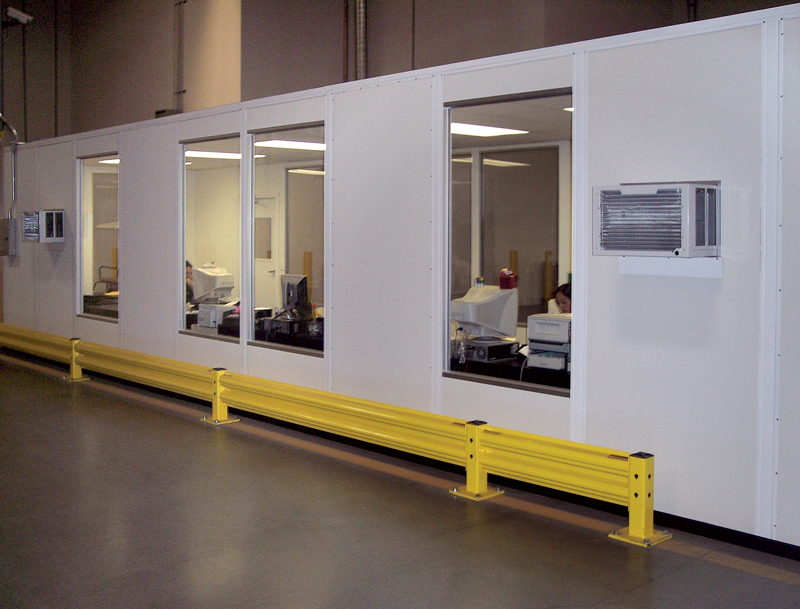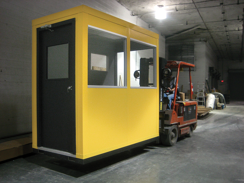 InPlant Offices customize booths or larger portable shelters on welded steel channel base frames which support the structure & flooring. Forklift pockets allow for easy uploading and placement.